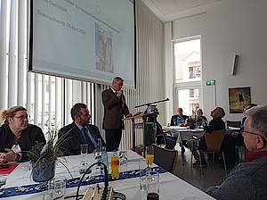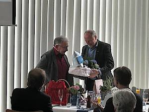 In seiner Rede bedankte sich Hans Golmann bei seinen engagierten Kolleg*innen und den vielen Wegbegleitern in diesen Jahren für die vielfältige Unterstützung, das konstruktive Miteinander und Wertschätzung, die ihm in diesen Jahren entgegengebracht wurde.